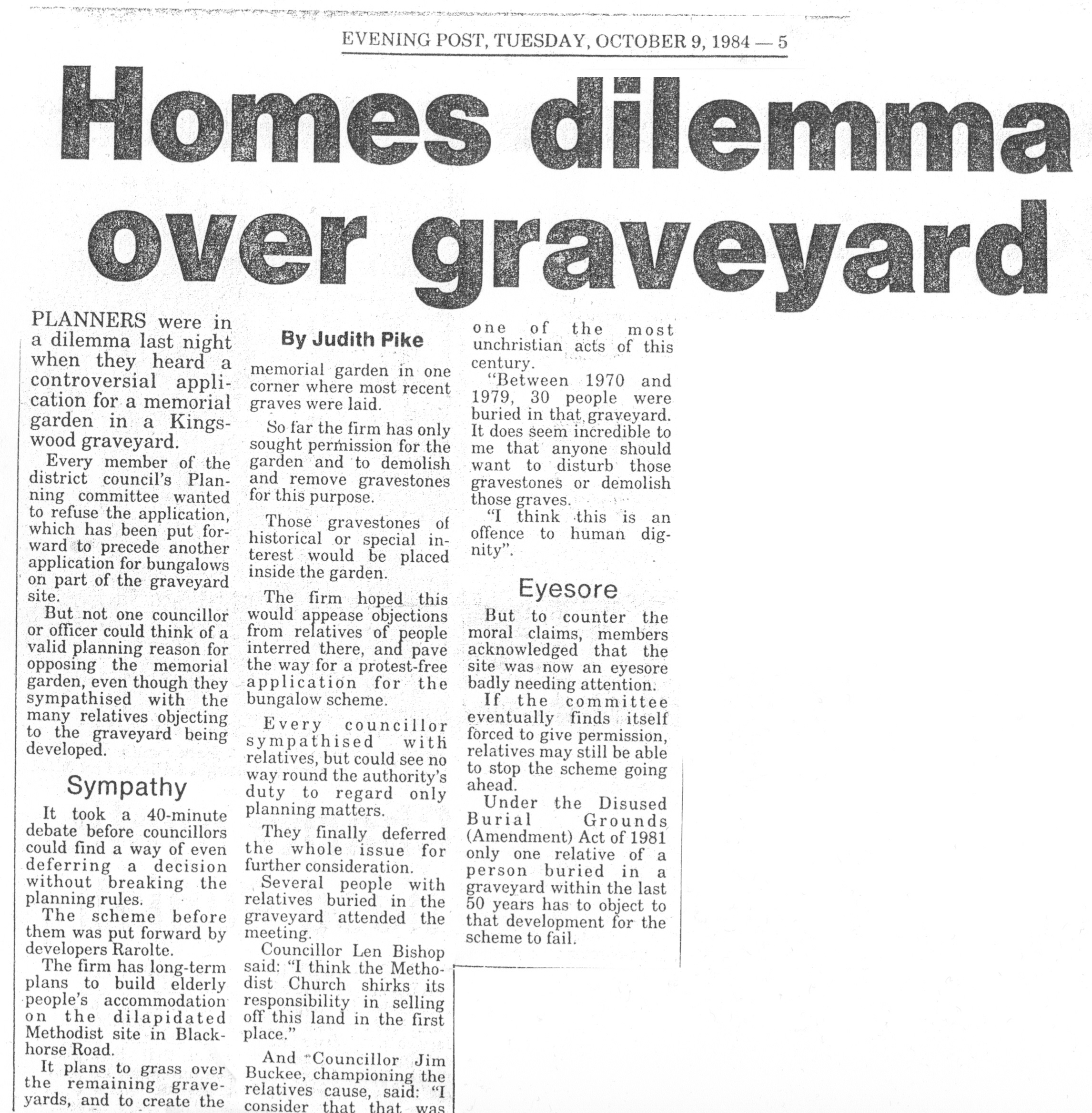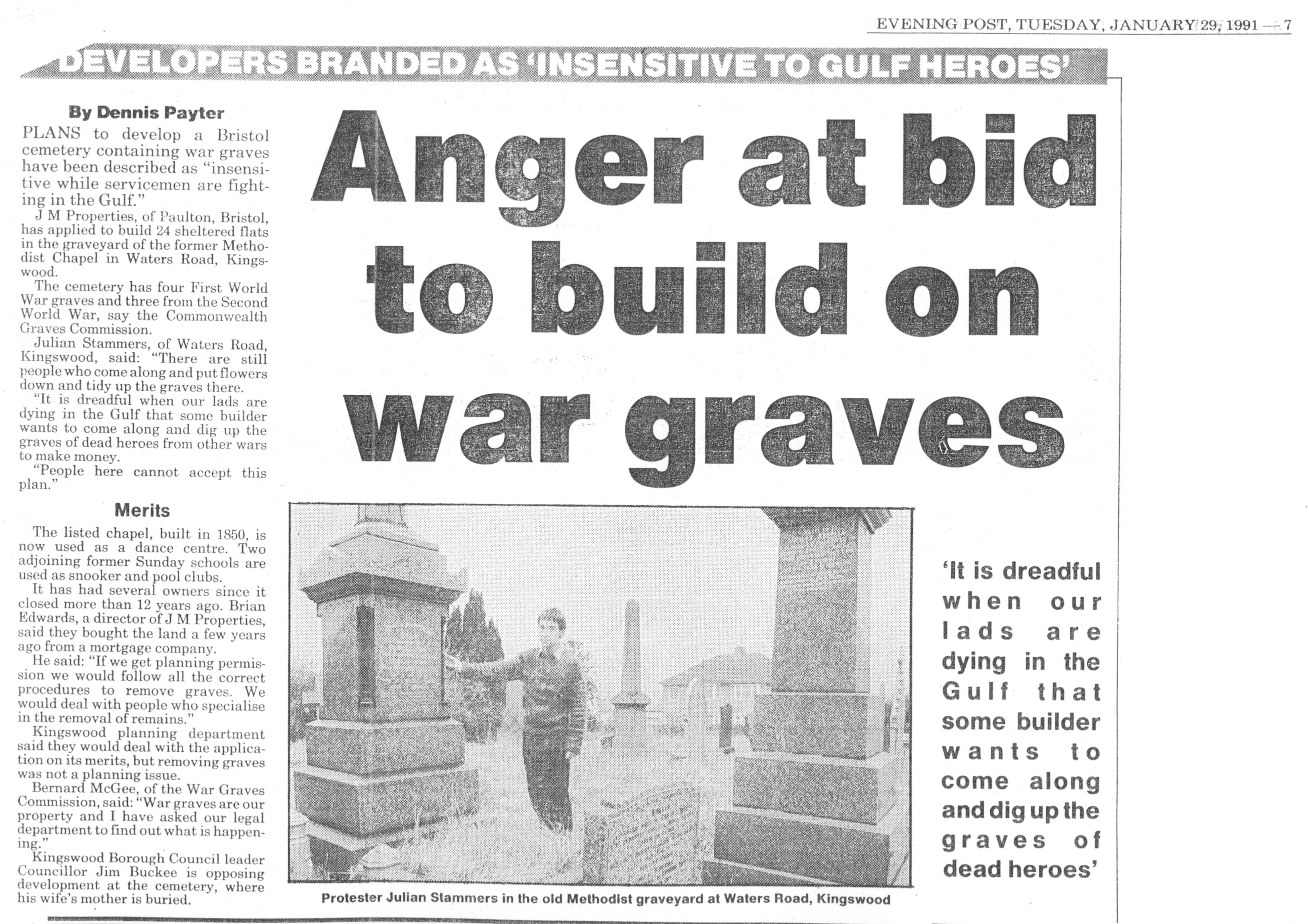 - 29 Jan 1991, Evening Post (opposition to plans for 24 flats on burial ground)