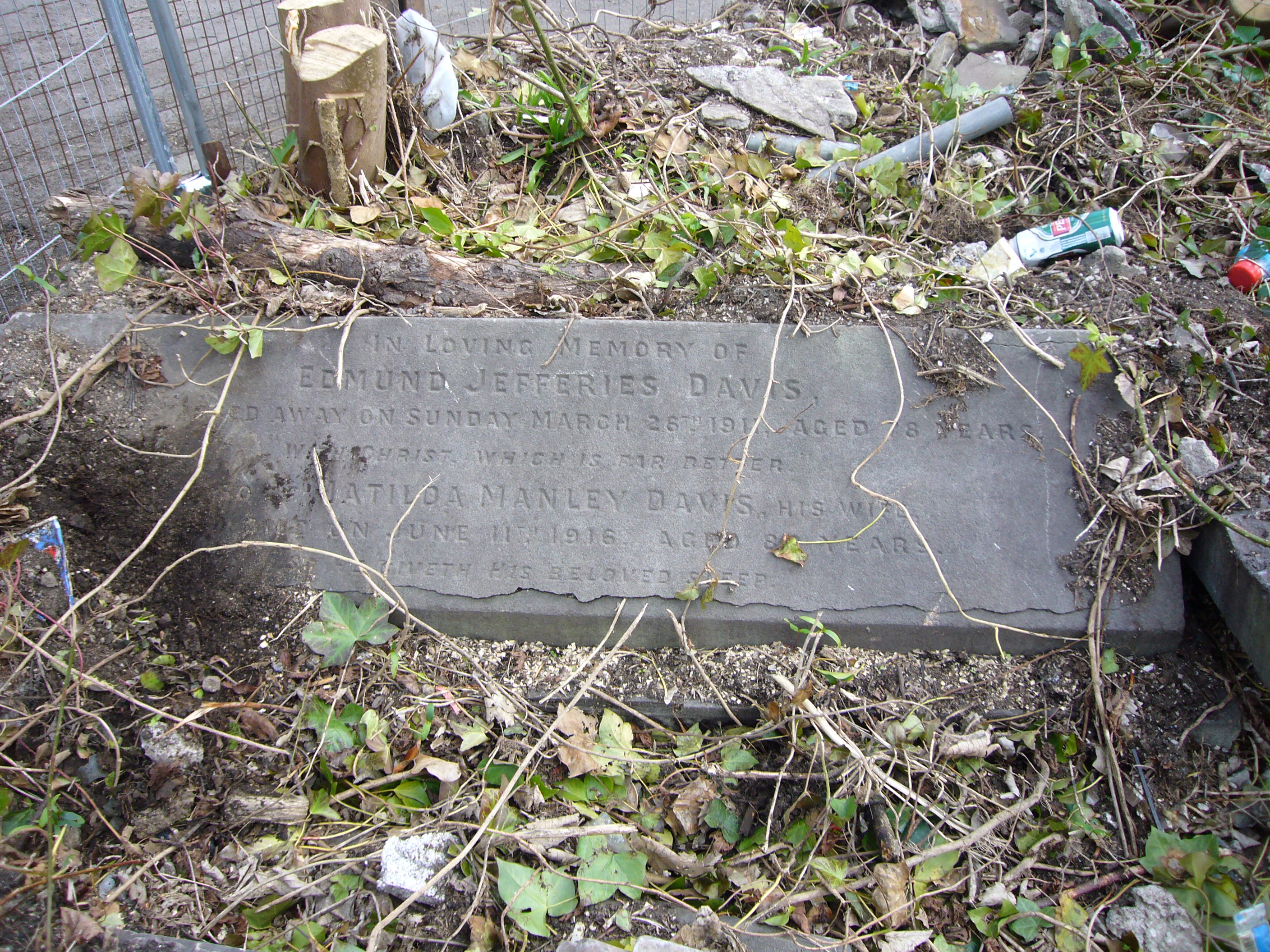 DAVIS gravestone (Grave 45 in area redeveloped for car parking, 31 Mar 2017) |