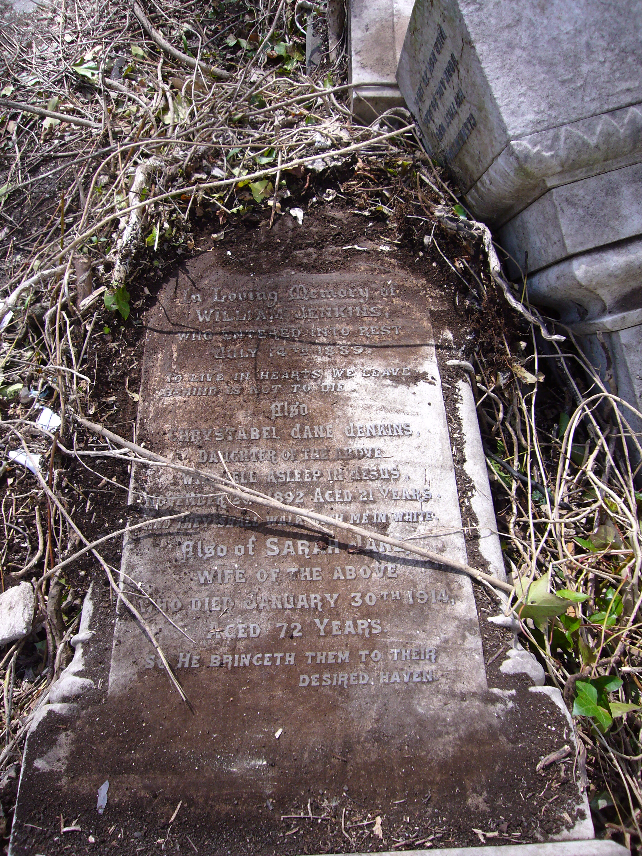 JENKINS gravestone (Grave 6 in area redeveloped for car parking, 31 Mar 2017) |