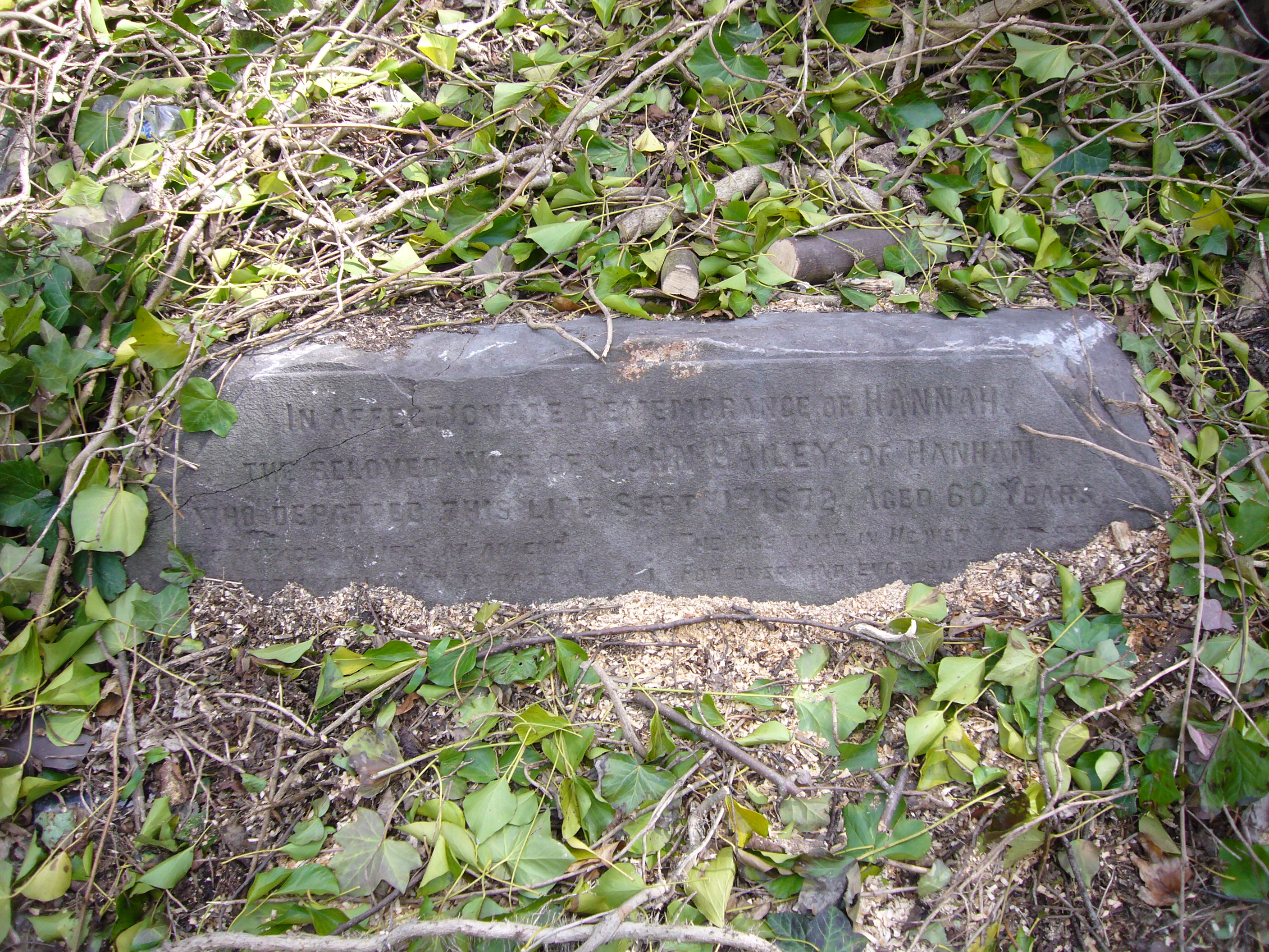 BAILEY gravestone (Grave 23 in area redeveloped for car parking, 31 Mar 2017) |